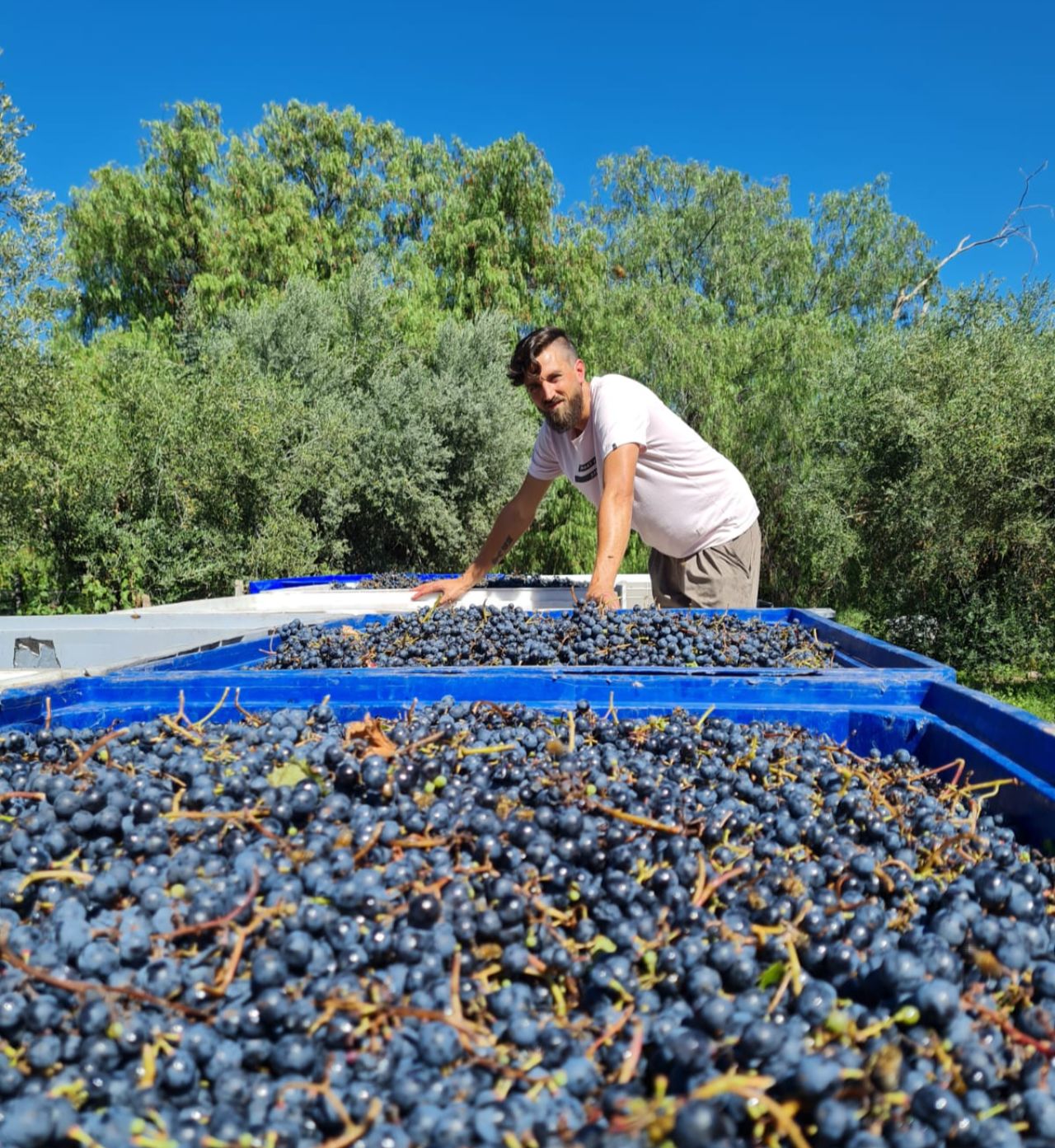 “Vas viendo lo que le das y lo que la naturaleza te responde”, continúa y no deja de mencionar que es el contexto el que después hace su parte. “El año pasado cosechamos en 2 hectáreas 4.700 kilos de uva y este año, en el mismo lugar, no llegamos a 2 mil”, cuenta a Ecobiz en un descanso plena cosecha.